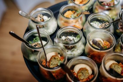 Wir kümmern uns gerne um das Catering für Gruppen zwischen mindestens 20 und maximal 400 Personen. Dabei gibt es keine festgelegten Menüs, sondern wir gehen im gemeinsamen Gespräch auf Eure individuellen Wünsche ein. Dabei ist fast alles möglich, da wir alle Speisen selbstverständlich frisch für Euch zubereiten.